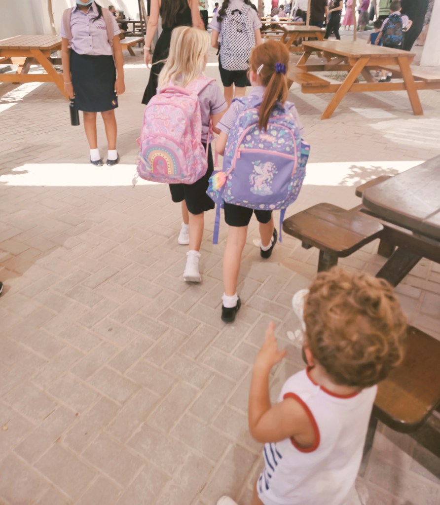 By the time we had parked up and headed in Sienna had started to become a little teary-eyed and upset. Zach was his usual laid-back self, although I know underneath the smile he was as anxious as we were. Everyone at the school is happy to help and they walked Sienna up to her class. At this point, I was more nervous than they were. Normally my anxiety would be taking over, leaving my children in a school I’ve visited once, which is a good 20-minute drive away from home and in a country, I’ve been in for 2 weeks would have sent my mind into overdrive in the past. However, there’s something about Dubai and being here that brings a sense of calm and rationale.