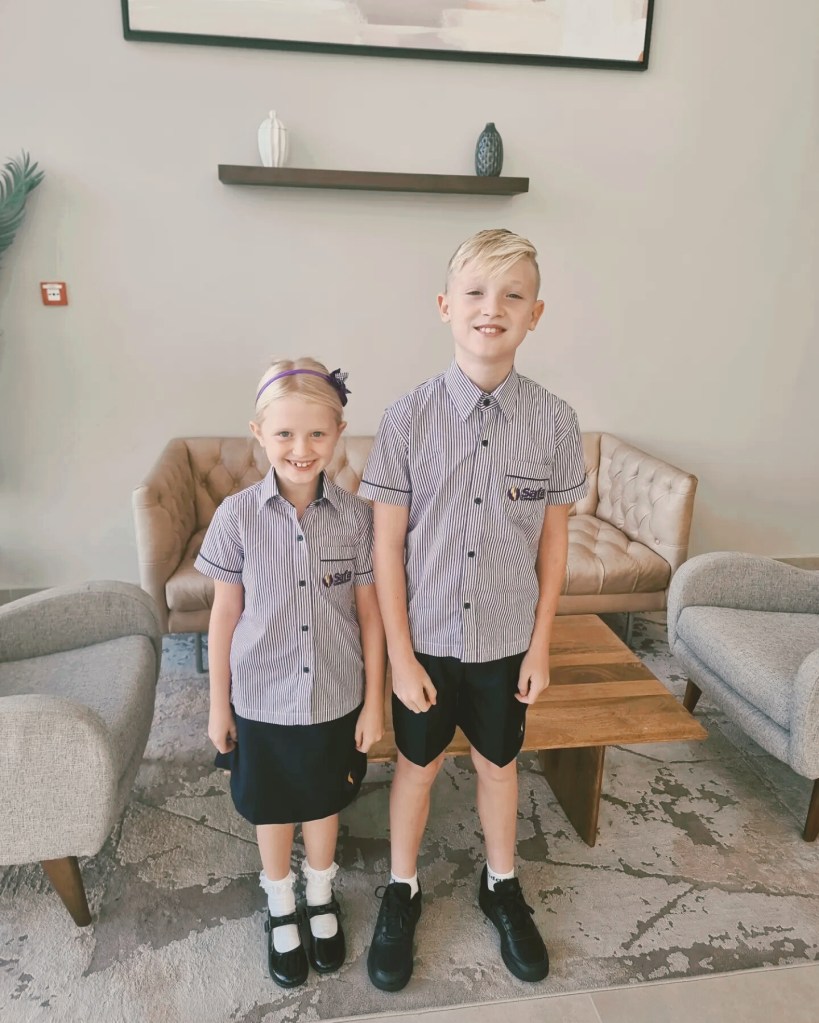 We have to get up at 6 am to get ready for school. Our first morning was stress-free, everyone was happy and we were on our way by 6:45 am. They both looked so smart! We had already been pre-warned about the traffic getting to school but it wasn’t too bad and we arrived in plenty of time.