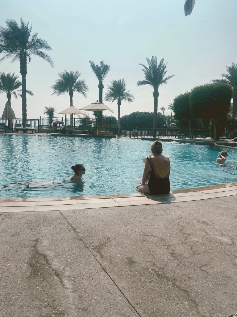 So where to start… My Mum got to experience what it’s like to get the kids up a 6 am and have them dressed, fed, and out of the door by 6:45 am. Mondays are normally the most difficult and this Monday was no exception. I feel for them, they’re going through so much change but they’re adapting quite well and by Thursday they’re up and ready to go. They love school so that’s a big help. We had arranged to go on a pool day with Louise and Rach so we got ready after the kids had left and headed over to Louise’s. We went to the Fairmont on the Palm which is a beautiful hotel and the pool area is great for everyone. It was so relaxing and just what I needed after the past few weeks, a moment of calm.